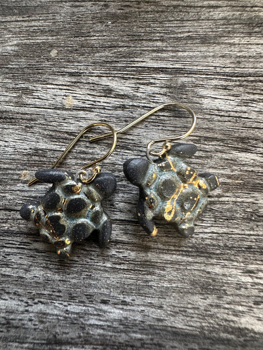 Black Porcelain Earrings: Solid black with Articulated Gold Tail